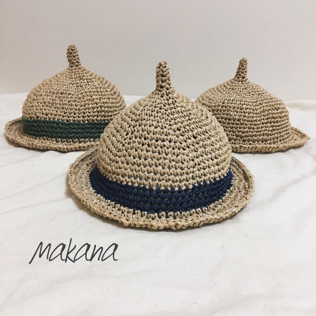 秋に大人気だったどんぐり帽子を夏にも使いたいなと思い麦わらバージョンにしてみました。